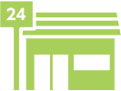 室内では落ち着きのある白とグリーンのデザインになっております。